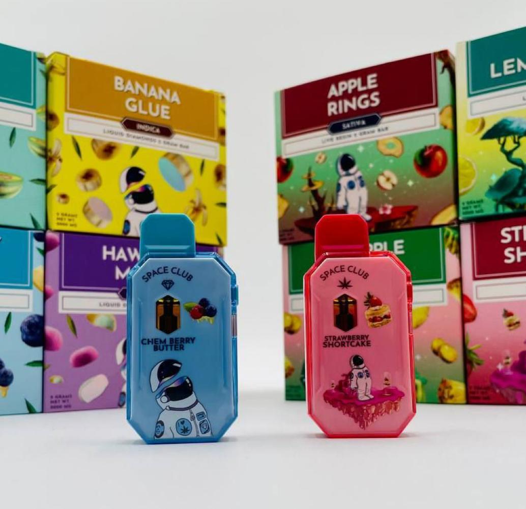 - Space Club: The sleek, pocket-friendly design makes Space Club both stylish and easy to carry, combining portability with durability. The device is built with high-quality materials and a leak-resistant construction to ensure a clean vaping experience.
